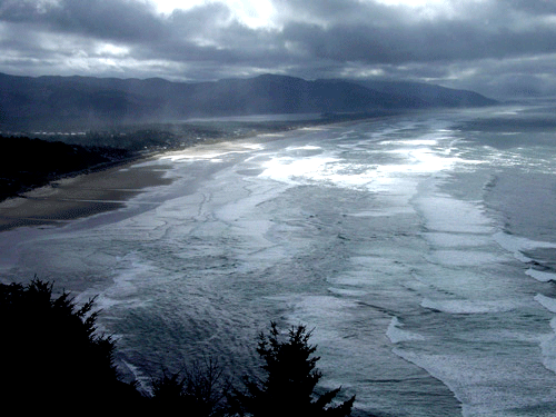| Beach at Hug Point looking south towards Neahkanie Mountain in the distance. | Beach near Hug Point, just North of Neahkanie Mountain* | |||